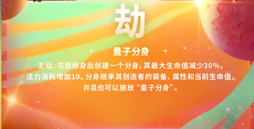 创建继承装备、属性和当前生命值的分身,分身可再次施放技能。