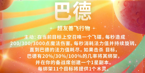 召唤飞碟持续伤害,击杀目标 20% 几率绑架并复制 1 星副本。