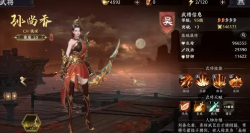 孙尚香呢是一位伤害很高的远程射手金将,如果你经常苦恼在打公会战和国战的时候用近战金将老是死于不明aoe的话,喜欢玩远程攻击的玩家的话,那她就是你不二之选,超远的攻击距离可以让她在安全之地尽情输出,被动普攻叠加伤害的机制也能让她在技能真空期有着不俗的输出,在pve