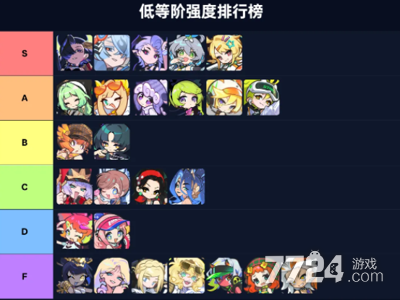 上面两个图片就是对应的一个强度的一个排名的情况的,大家都是可以去根据排名去进行挑选,其中S级的角色基本上全场景通用,强度都是十分高的,A级的话基本上就是部分场景很好用,强度也是不差的,B级的话基本上就是前中期过度用的,后面的等级基本上也就是边角料一些啦。