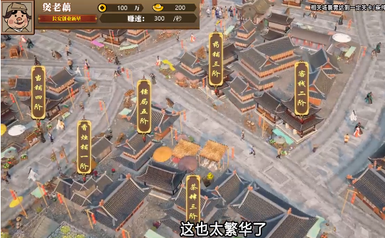 鳞次栉比的屋宇经营着各行各业:医馆、钱庄、香店.....玩家可跟据自己的商业嗅觉和主线任务,解锁各个行业和商铺。招伙计,纳贤才,精心打理,让你的街区更繁荣。