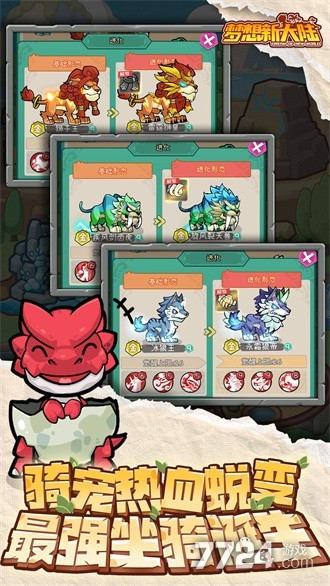 游戏中玩家可以驯服宠物并将它们驯养到牧场,游戏中有猛犸象,剑齿虎,霸王龙,冰霜狼,雷霆狮子,等等众多宠物驯养任你选择,还能将他们圈养起来培育挑选出你心仪的宠物之王。