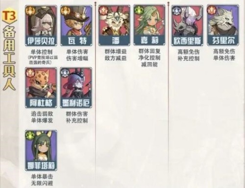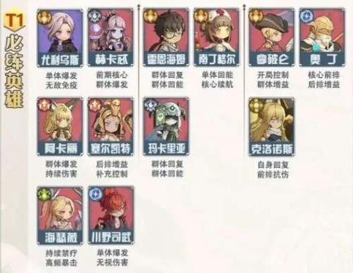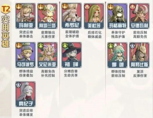 那么上述的这些排行就是目前版本中各个英雄所处在的梯度位置了,玩家们可以选择各职业中强度位于T0或者T1的英雄来进行主要的培养和使用,一定是能够在竞技场和主线推图中产生极大的帮助作用的。