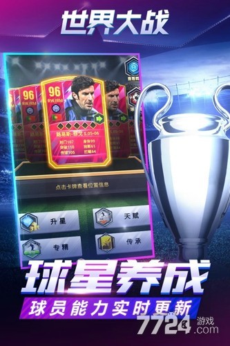 1.球星培养:游戏提供了深度的球员培养系统。玩家可通过训练和比赛提升球员能力,还能招募心仪的球星,每位球员都有初始能力值,品阶越高能力越强。玩家可通过升级卡提升球员等级,使用特训卡解锁球员的球技,并通过强化碎片进行强化,提升进攻和防守属性。针对不同球星的特点,可进行精准加点,打造专属巨星。