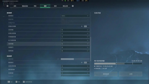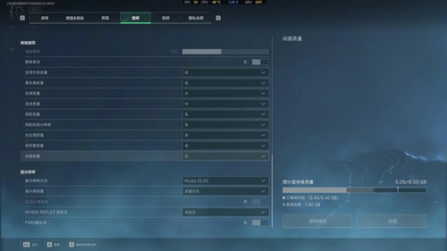 画面设置总结:全低、纹理极高,DLSS质量、关闭低延迟