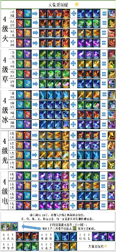 五级则需要每条上阵的蛇加起来一共要6个皇冠加上对应元素组合才可以进行激活,可以说难度非常的高了,下面就是各个等级技能激活的合成图鉴。