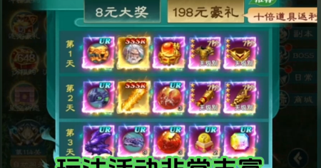 第1个:vip333 召唤券*1、仙玉*88、将魂*1000、元宝*648