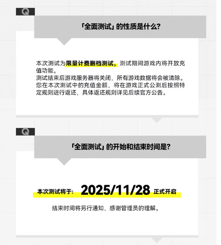 全面测试开启时间:2025年11月28日,结束时间将会另行通知。