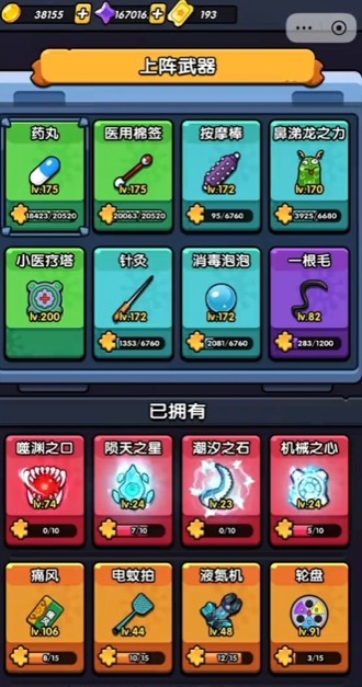 药丸是游戏的初始武器,技能出现概率比较高,能够在前期对病毒造成大量的伤害。通过技能提升,药丸的子弹数量和攻击速度是可以大幅提高的。但是药丸的攻击力较低,在后期面对高血量敌人时显得不够强。