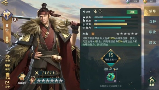 夏侯淳:通过威望70W可获得,技能“怒杀”非常强大。