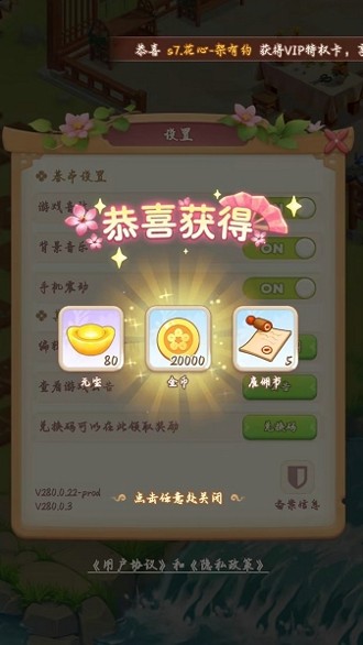奖励:金币*1000、加速卡*10、花坊币*30