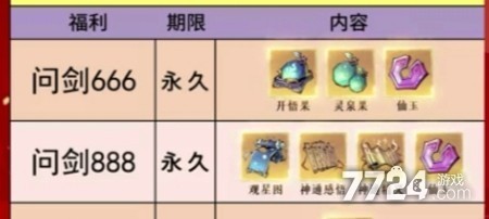 第一个:问剑666 礼包内容:开悟果*1、灵泉果*10、仙玉*200