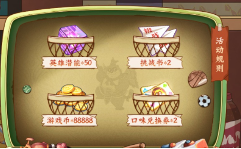 稀有英雄碎片*20,一小堆英雄经验(2小时)*1,一小堆英雄潜能(2小时)*1