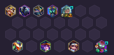 羁绊组成:1魄罗之心、2 决斗大师、1 荆棘之兴、2主宰、7 水晶玫瑰、2 司令、2护卫、1 大宗师