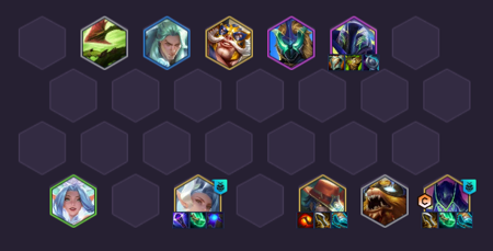 羁绊组成:1 卡牌大师、2 假面摔角手、1魄罗之心、2 护卫、3司令、2圣盾使、5 奥德赛、2 狙神、1 大宗师