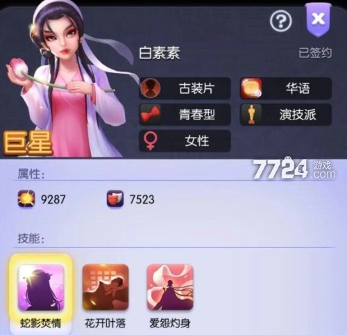 小青和白素素是古装最核心的体系,小青1技能能够让白素素下个场景必然出演,白素素1技能能够在拍摄打斗和约会场景让小青也上场,从而触发小青3技能,双方属性也就都提升了500%。