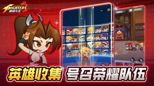 最强斗王是一款获得SNK正版授权的拳皇IP放置格斗手游。游戏精准复刻了拳皇系列的经典角色与技能,在游戏中,玩家可以收集草薙京、八神庵、不知火舞等大量人气角色,组建属于自己的格斗家战队,游戏人物主要是采用了Q版萌系画风,战斗采用自动回合制,轻松简单。