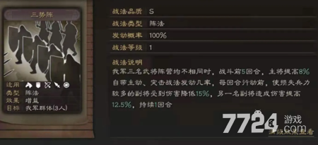 以上就是三国志战略版三势阵有哪些阵容的全部分享了,游戏里能够使用的阵容是有很多可以选择,所以大家可以多多尝试,其他的搭配方案7724帛睿小编也是能够和大家分享,玩家们是可以多多关注了解。